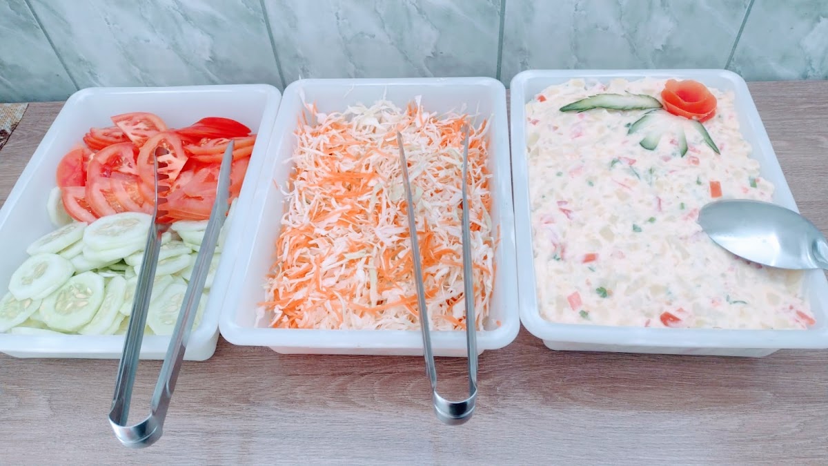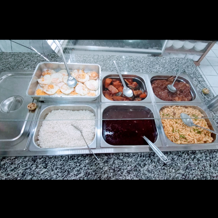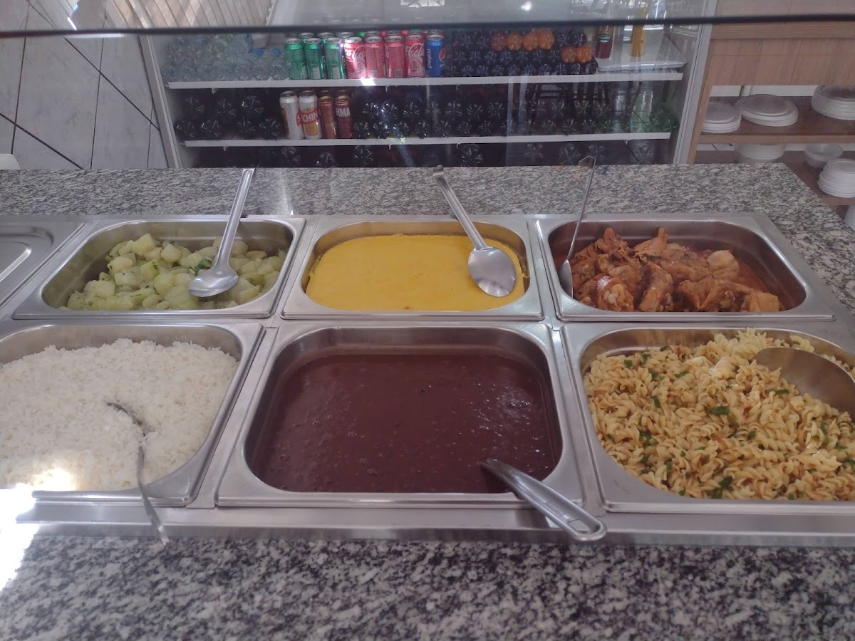 Excelente atendimento, comida de buffet muito rica, o cardápio muda todos os dias de sobremesas a saladas, eles têm uma variedade de bebidas naturais e refrigerantes. Eles atendem a partir das 7 da manhã Até as 2 da tarde.